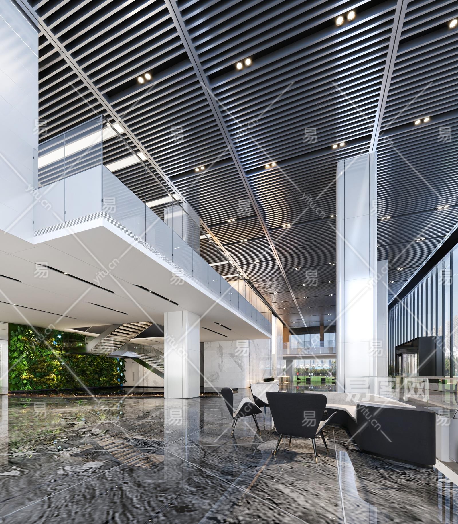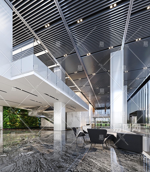 现代办公大堂3D模型下载
