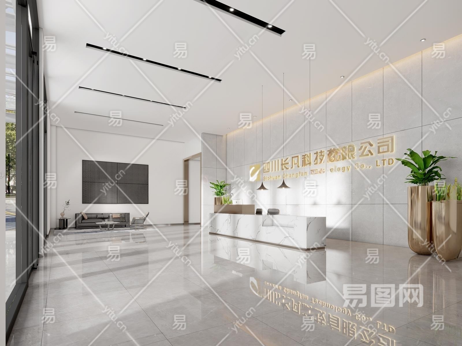 现代公司大堂3D模型下载