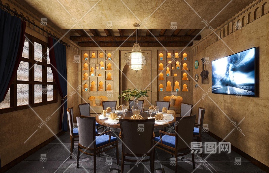 侘寂餐厅包厢3D模型下载