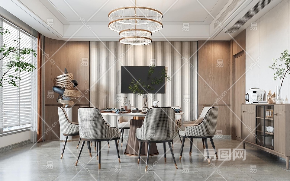 现代中餐厅包间3D模型下载
