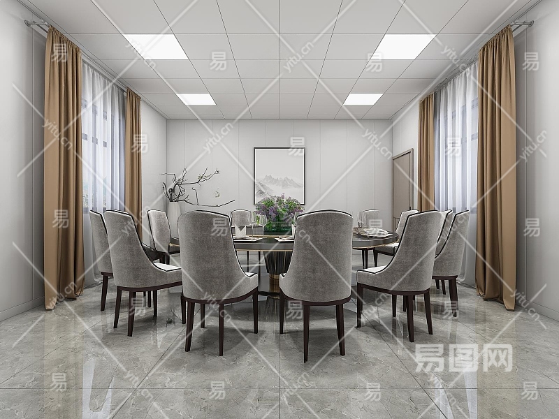 现代餐厅包间3D模型下载