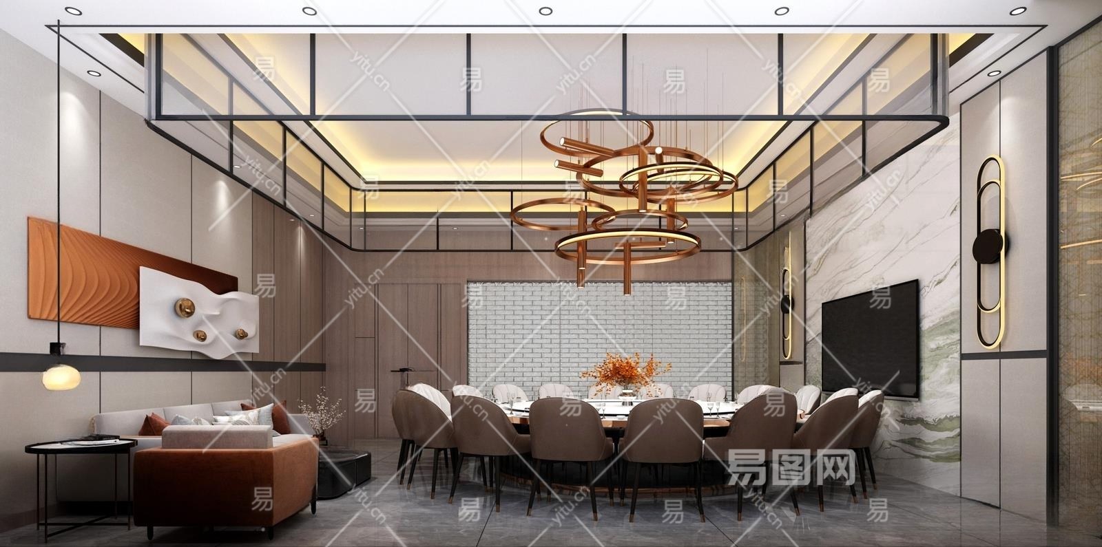 现代餐厅豪包3D模型下载