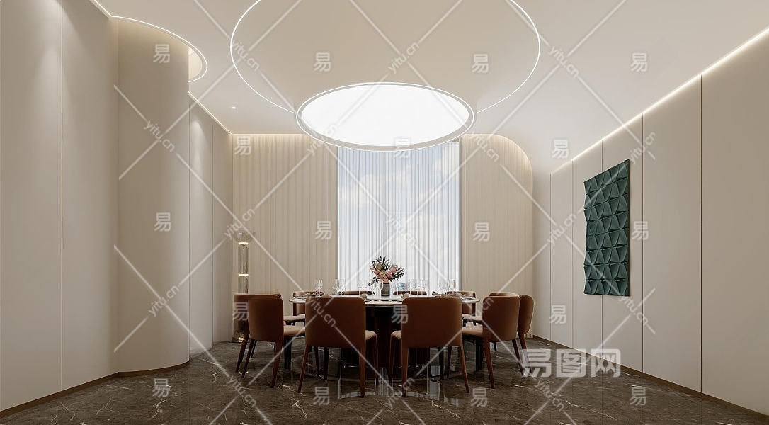 现代餐厅包间3D模型下载