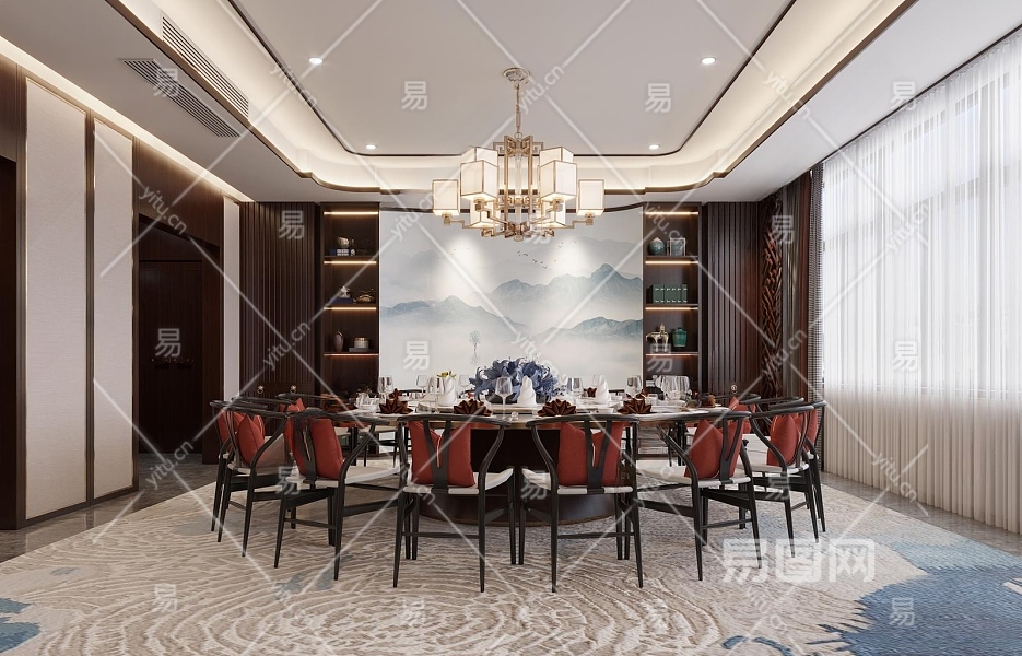 新中式餐厅包厢3D模型下载