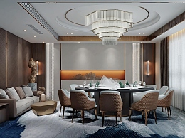 新中式酒店餐厅包间3D模型下载