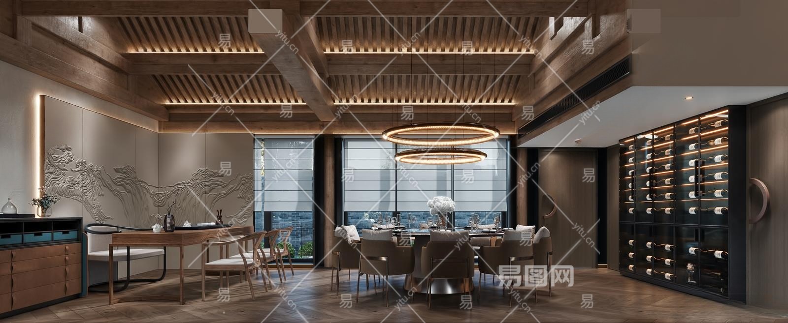 新中式包厢3D模型下载