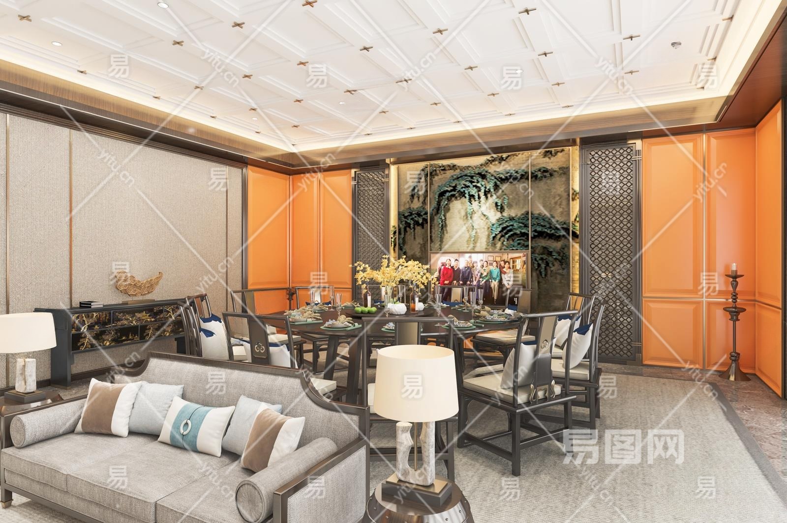 新中式包厢3D模型下载