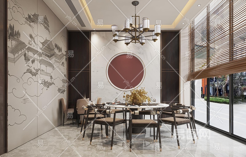 新中式中餐厅包间3D模型下载