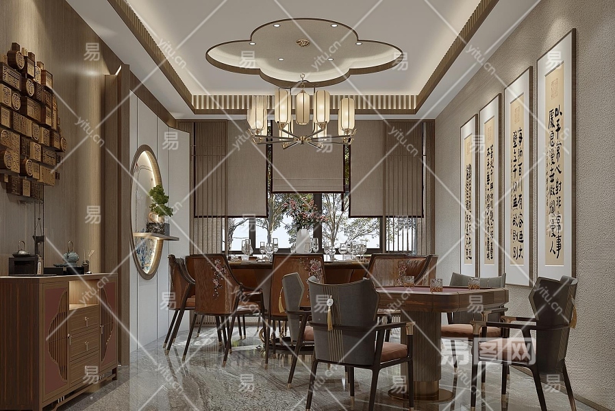 新中式包厢3D模型下载