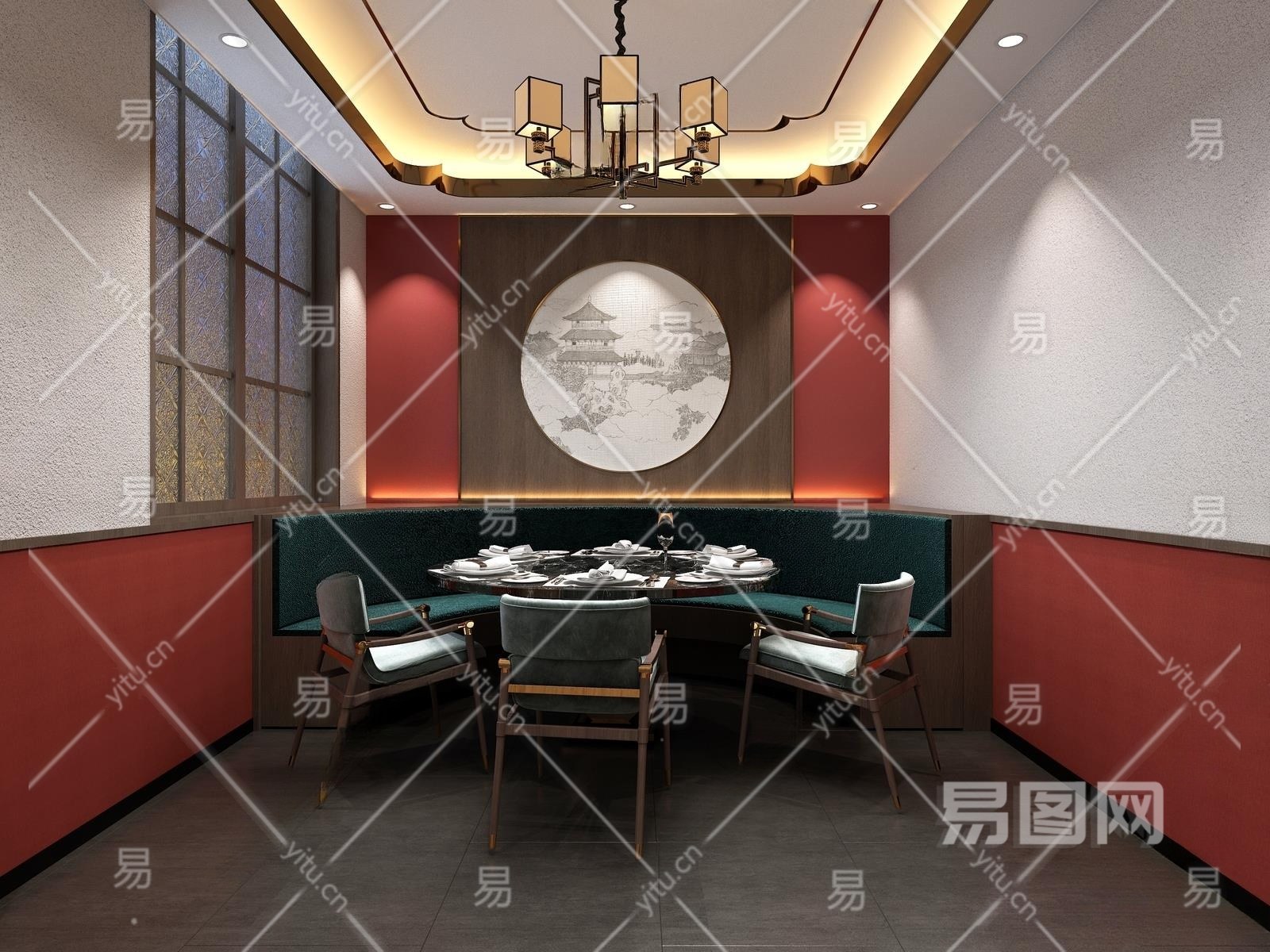 新中式中餐厅小包间3D模型下载