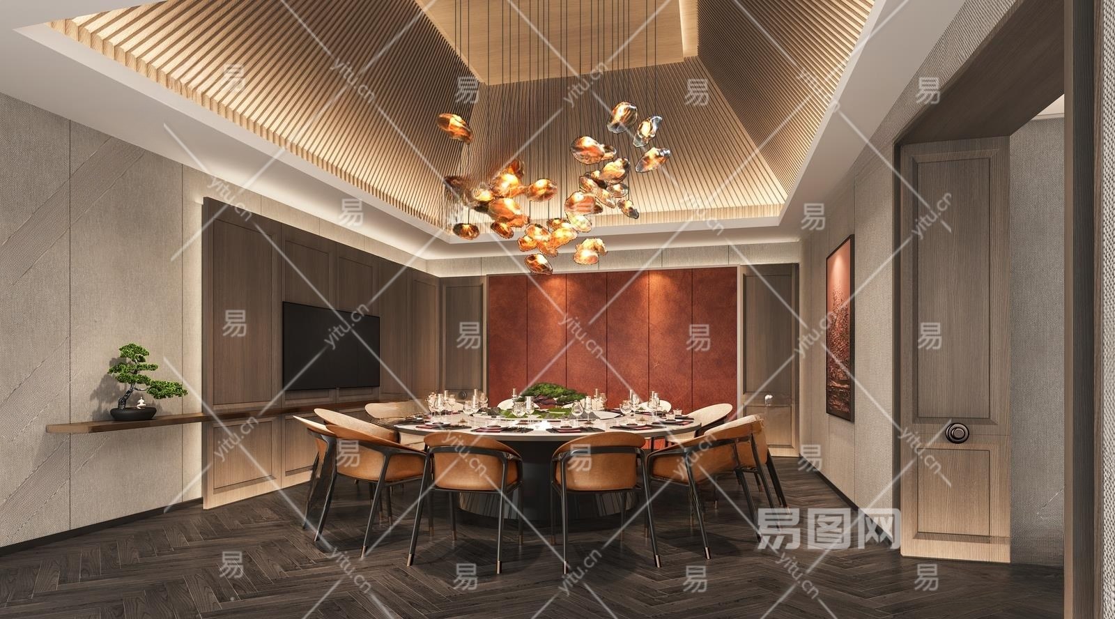 新中式餐厅包间3D模型下载