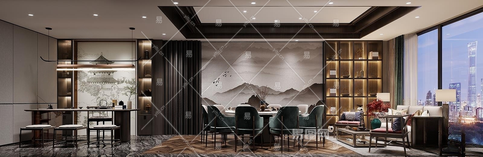 材质CR材质 贴图有贴图 灯光CR灯光 风格新中式