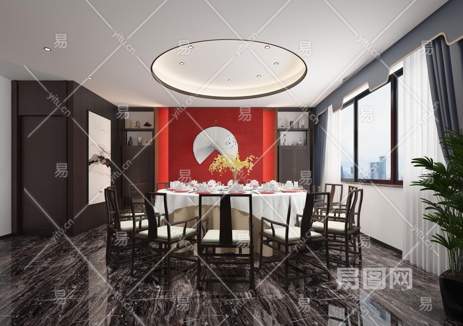 新中式包间3D模型下载