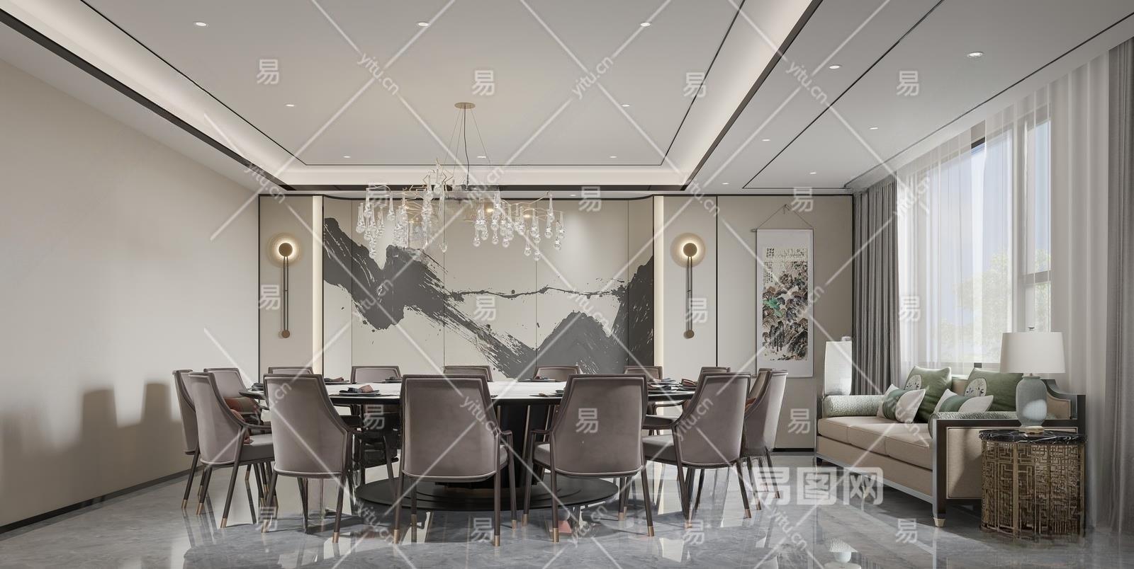 新中式餐厅包房3D模型下载
