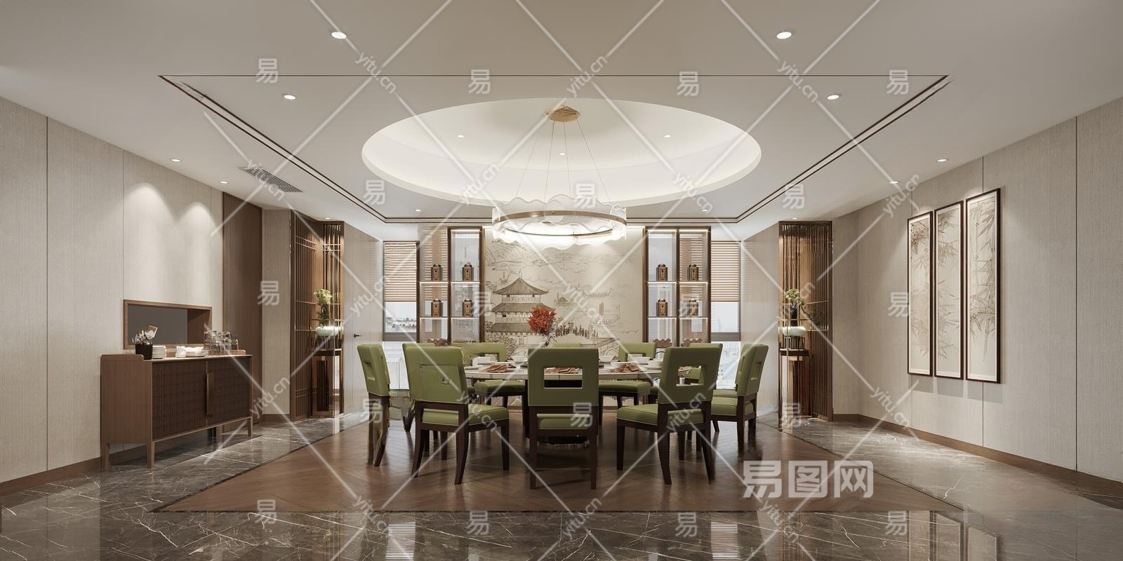 新中式包厢3D模型下载