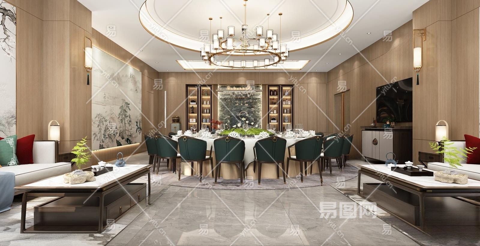 新中式包厢3D模型下载