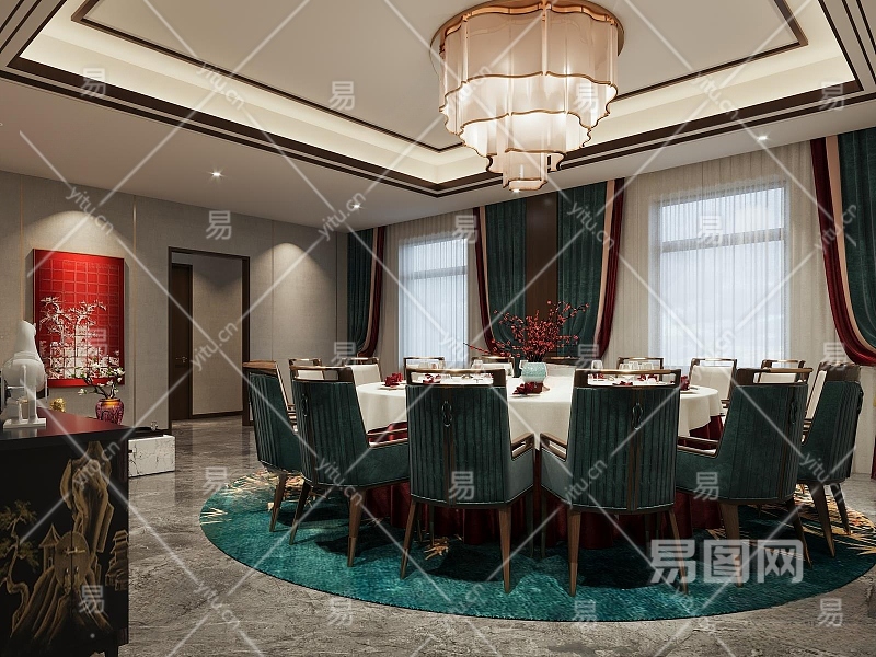 新中式餐厅包厢3D模型下载
