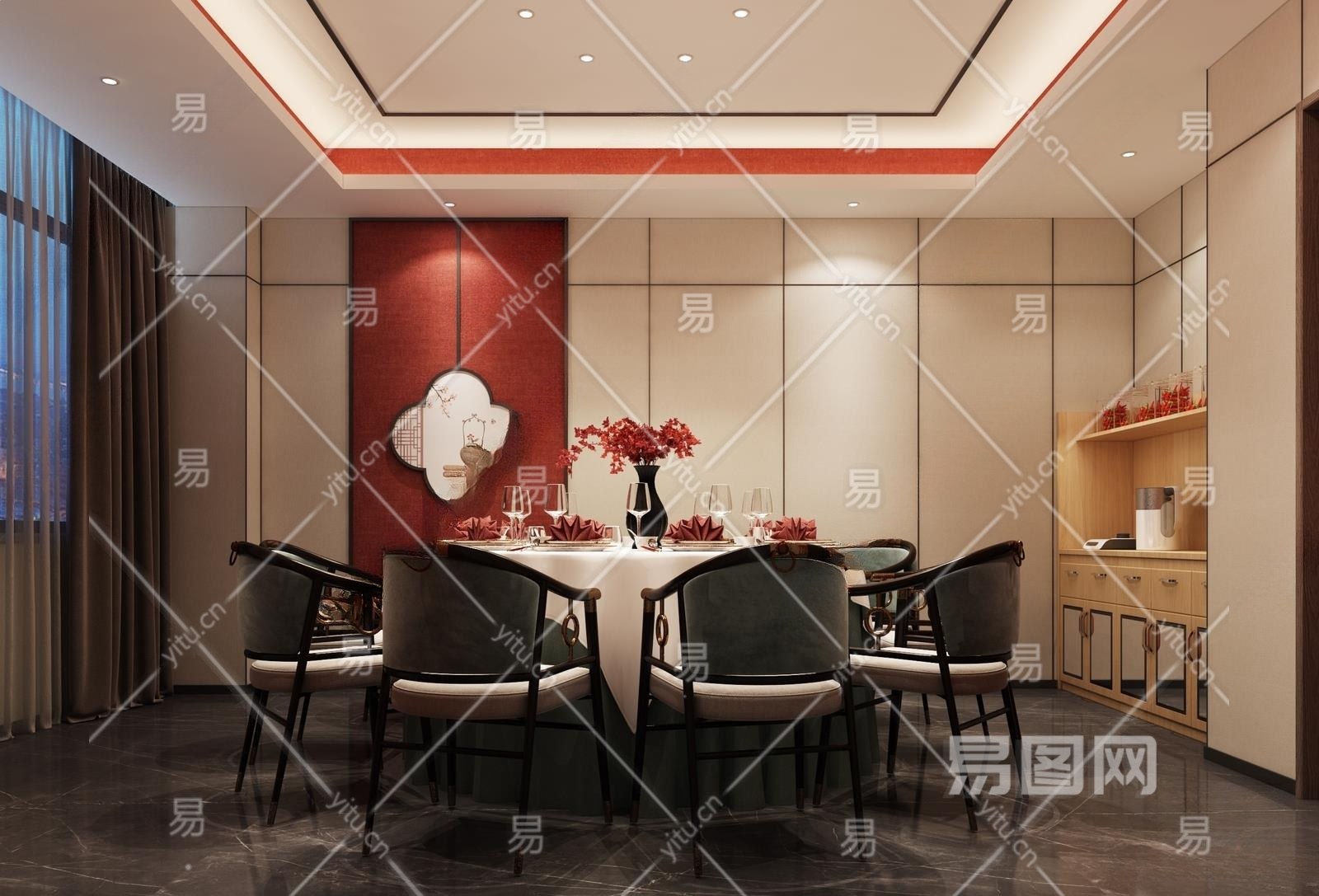 新中式餐厅包间3D模型下载