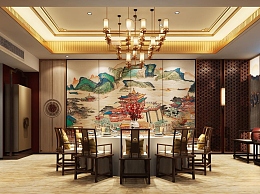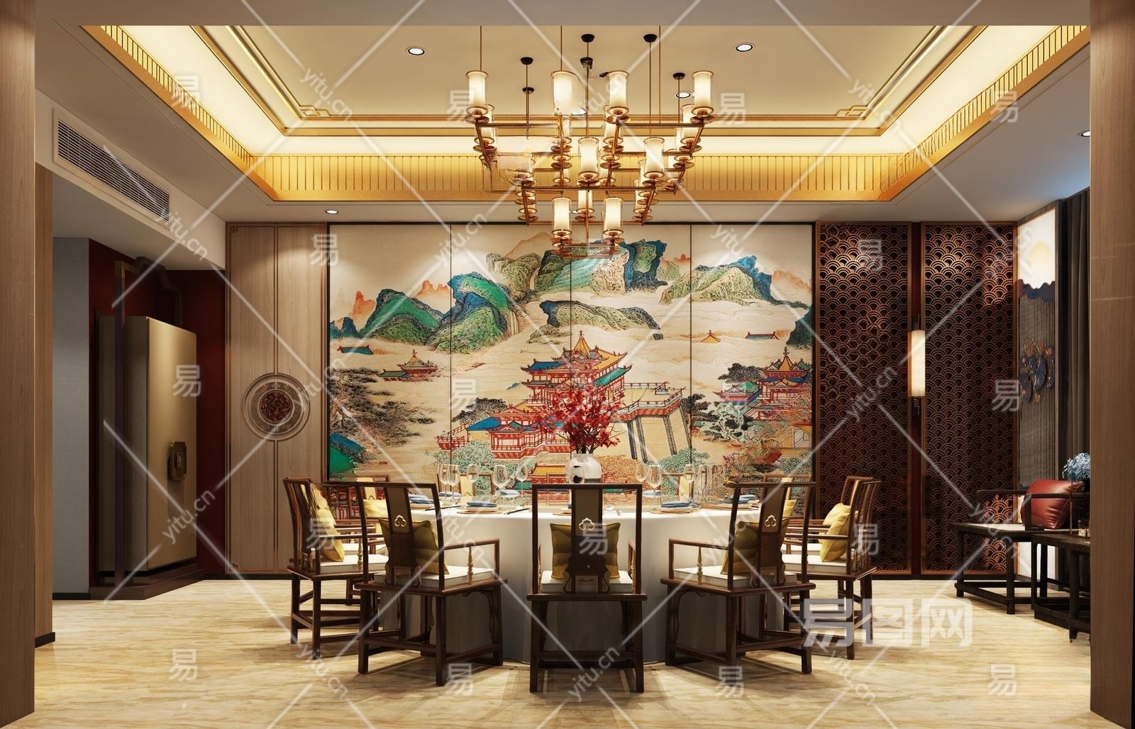 新中式餐厅包间3D模型下载