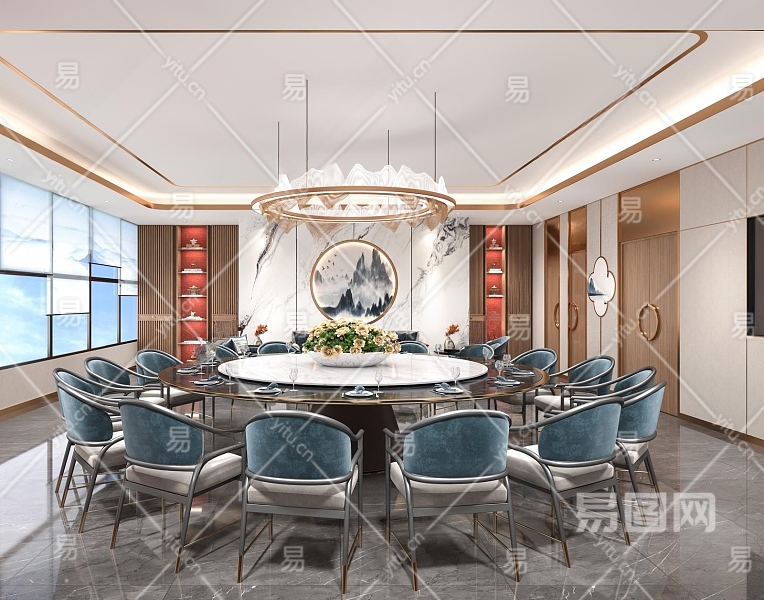 新中式餐饮包间3D模型下载
