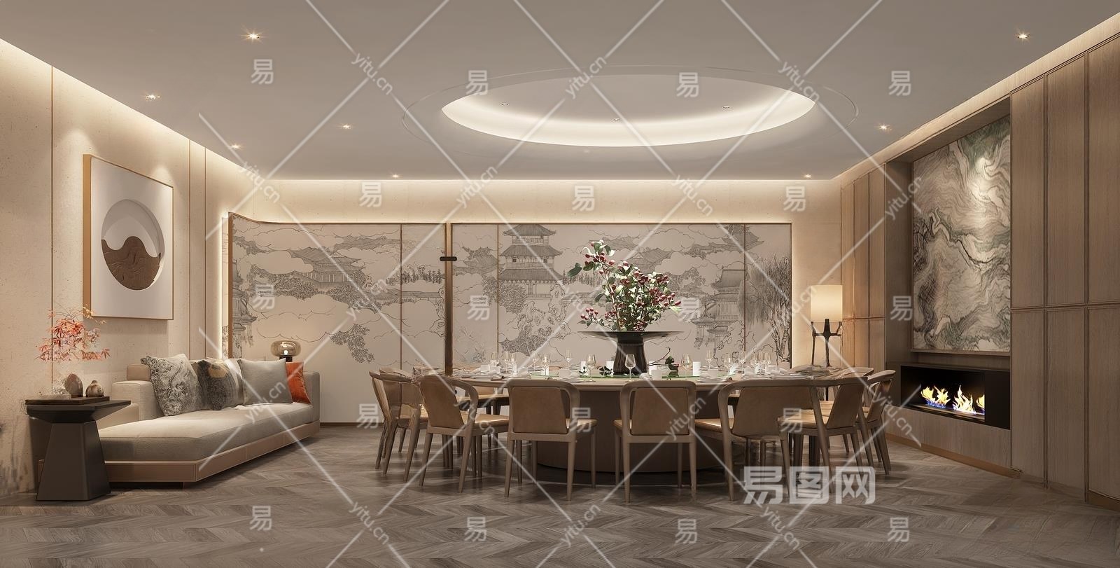 新中式大包厢3D模型下载