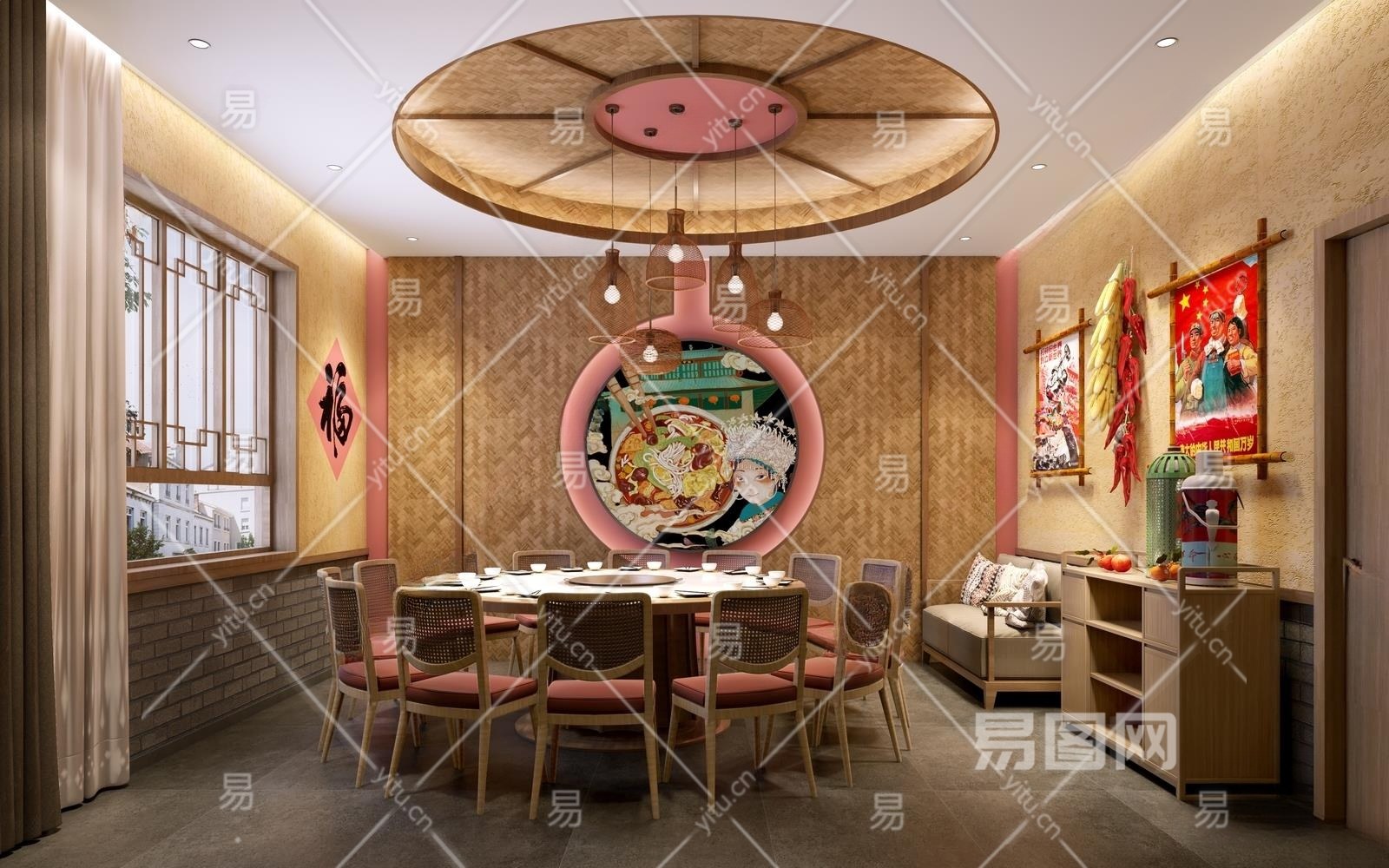 新中式东北铁锅炖包间3D模型下载