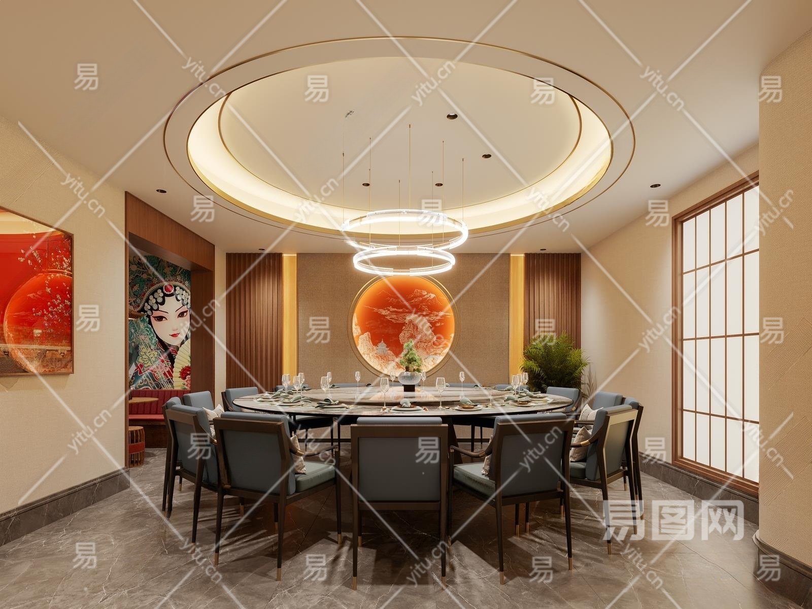 新中式餐厅包间3D模型下载