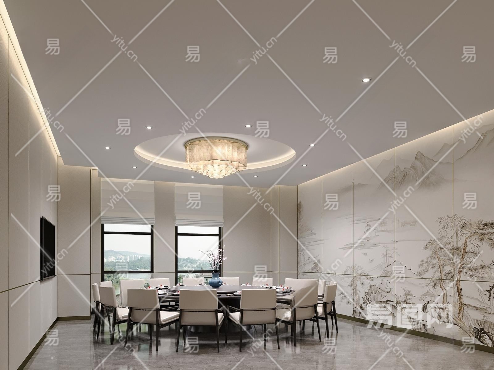 新中式中餐厅包间3D模型下载