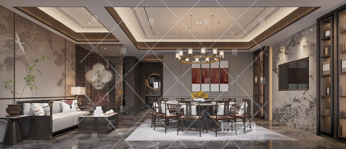 当前的位置:首页 > 3D模型 > 餐饮空间 > 包厢 > 新中式中餐厅包厢3D模型下载