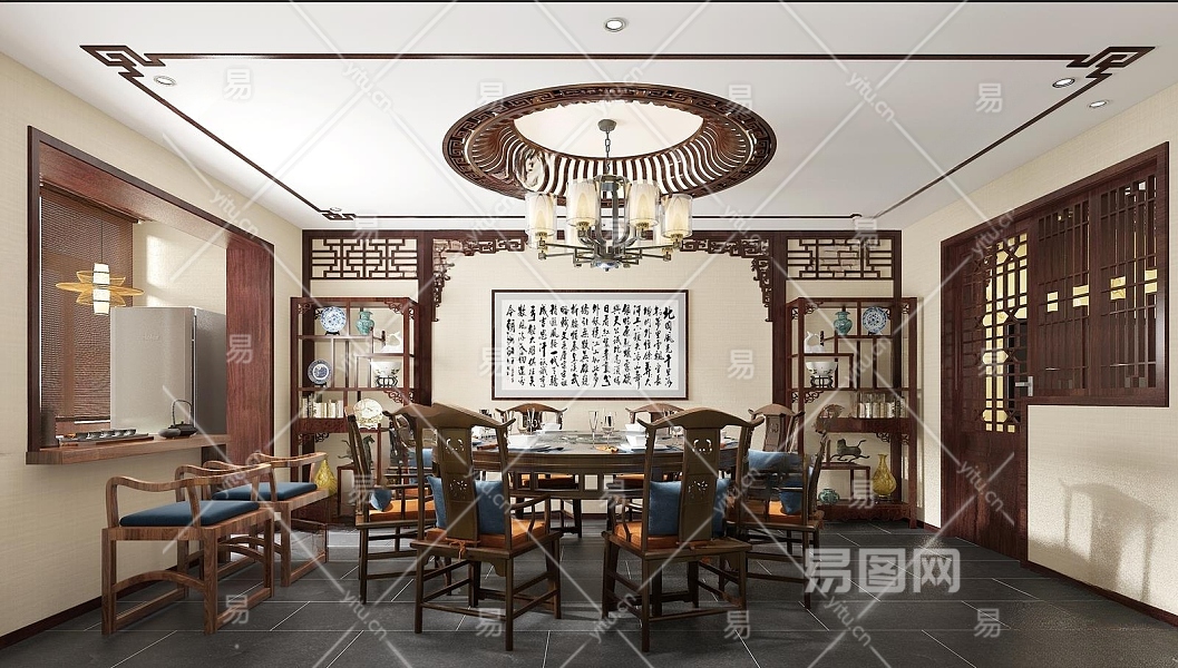 材质VR材质 贴图有贴图 灯光VR灯光 风格中式
