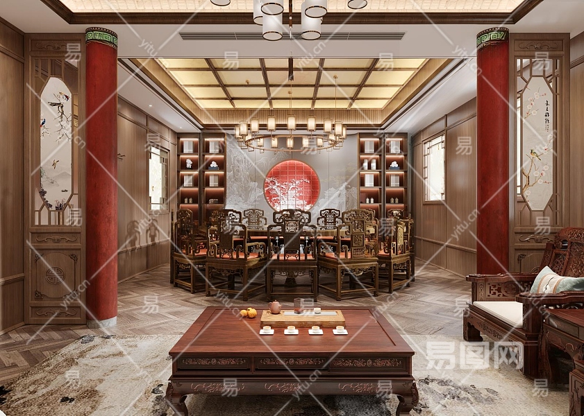 中式包间3D模型下载
