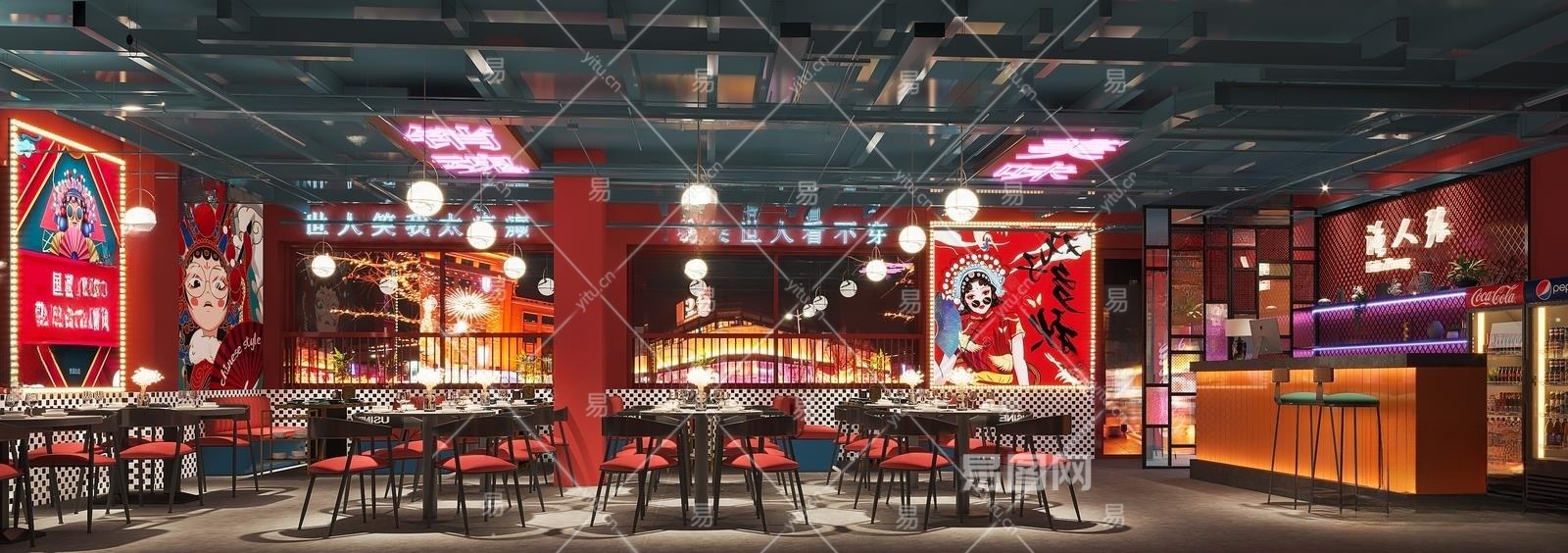 现代国潮风火锅店3D模型下载