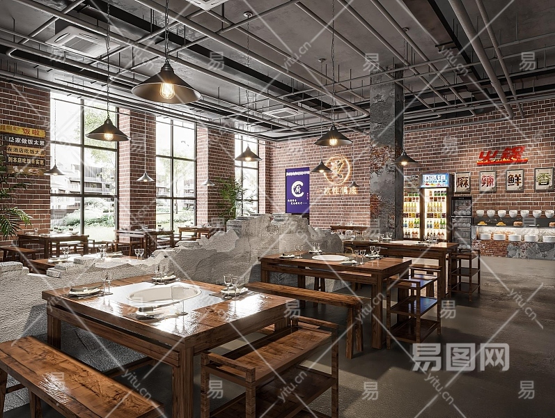 工业风火锅店3D模型下载
