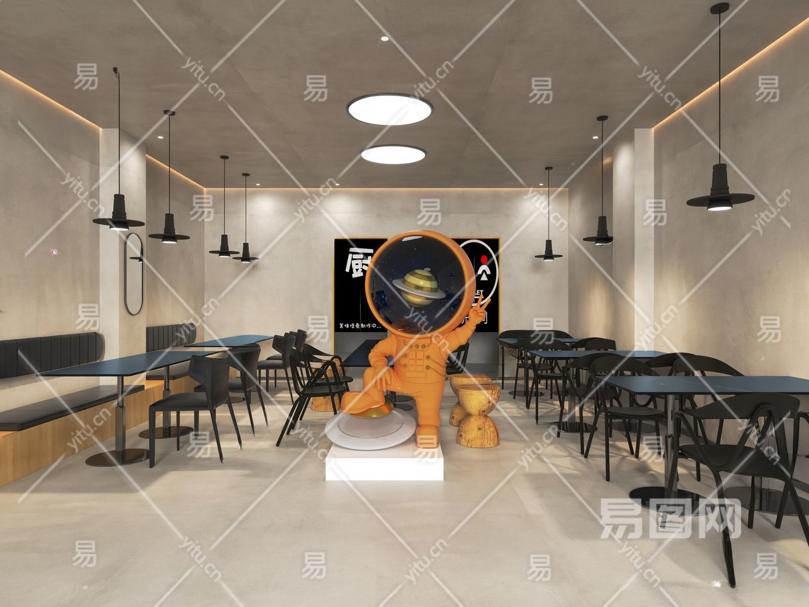 工业风快餐厅3D模型下载