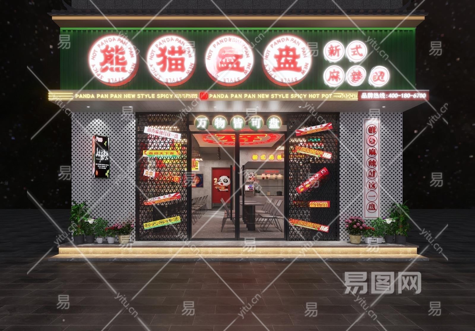 工业风熊猫盘盘麻辣烫店3D模型下载