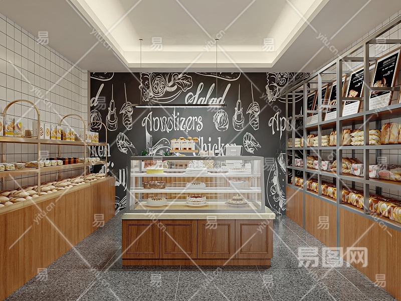 现代甜品面包店3D模型下载