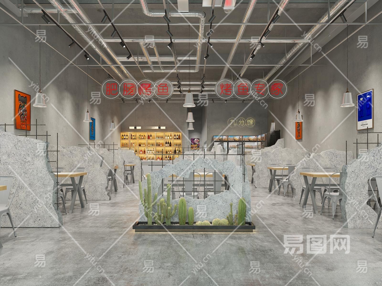 工业风烧烤店3D模型下载