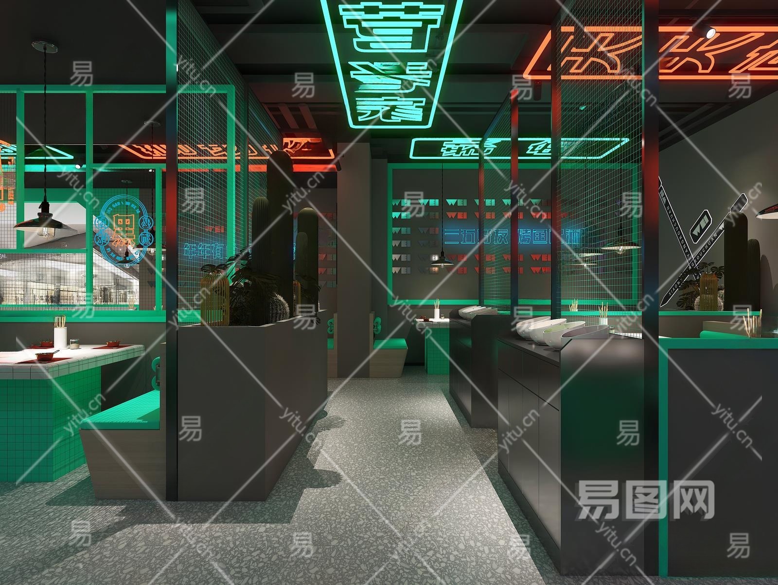 工业风烧烤店3D模型下载