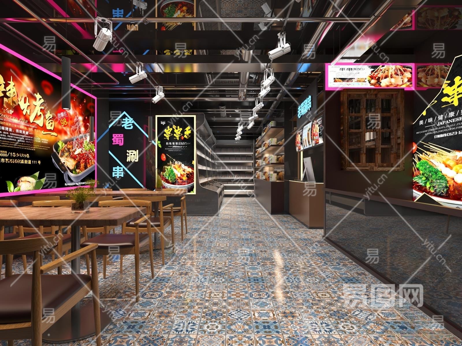工业风串串烧烤店3D模型下载