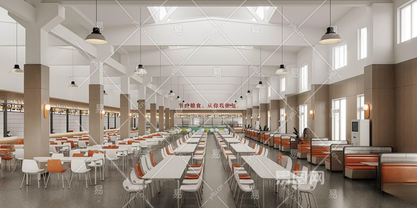 现代职工食堂3D模型下载