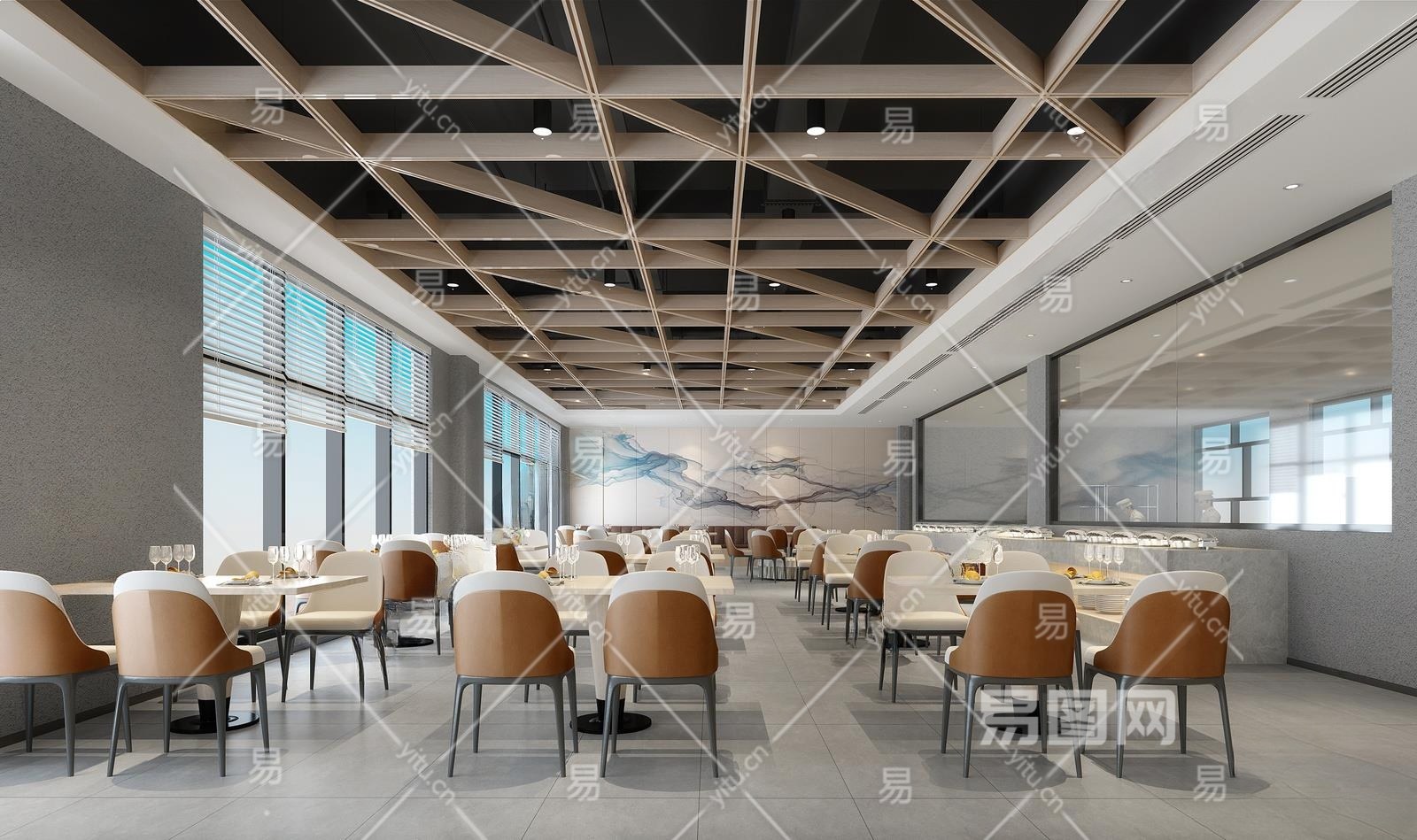 现代自助餐厅3D模型下载