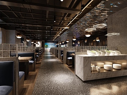 工业风自助餐厅3D模型下载