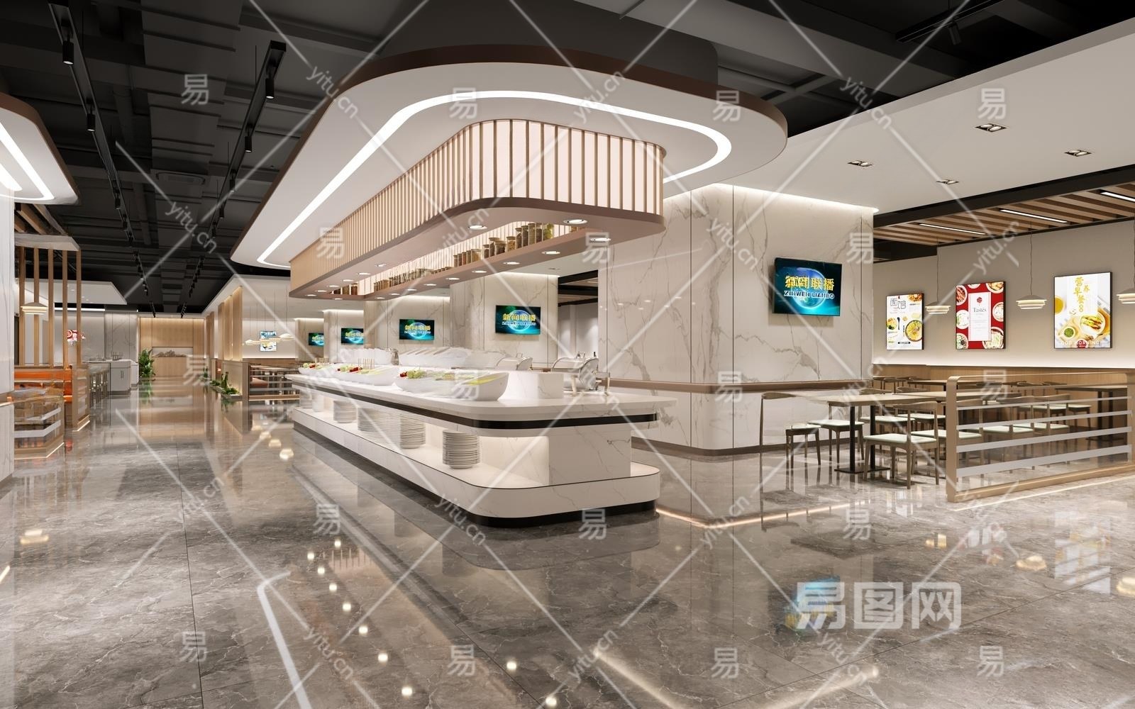 现代自助餐厅3D模型下载