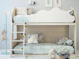 北欧儿童双层床 衣架 挂画 地毯摆件