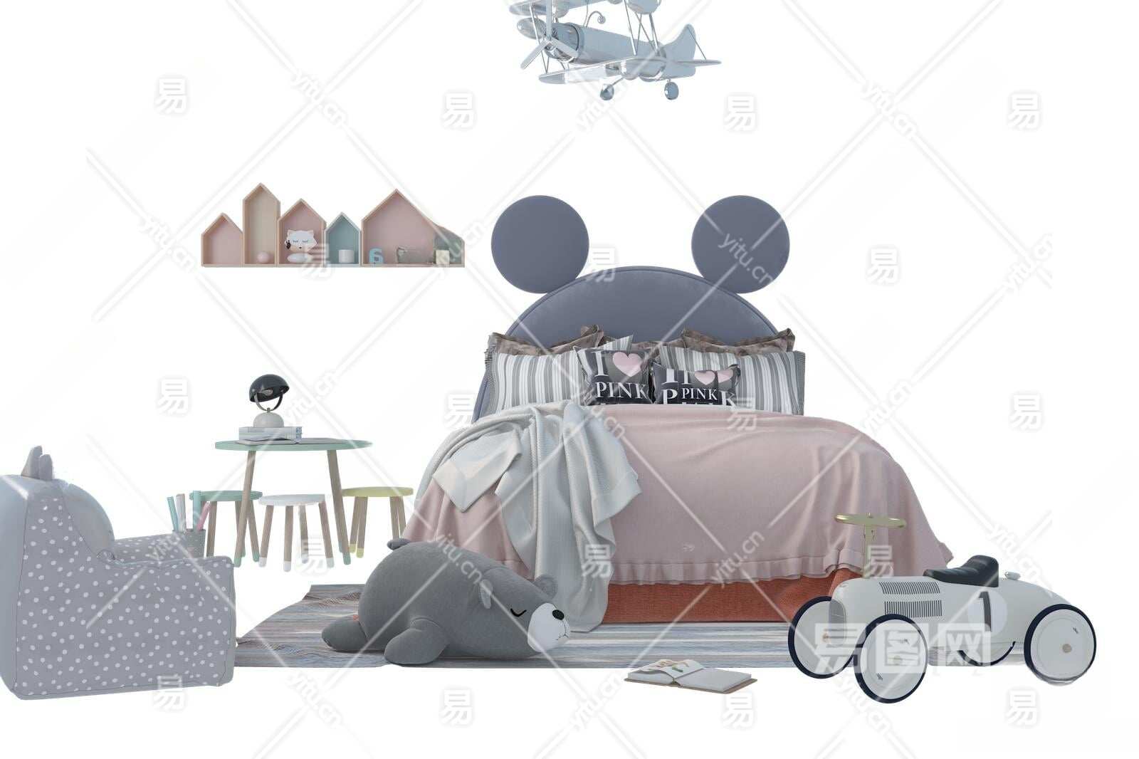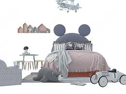 现代儿童床3D模型下载
