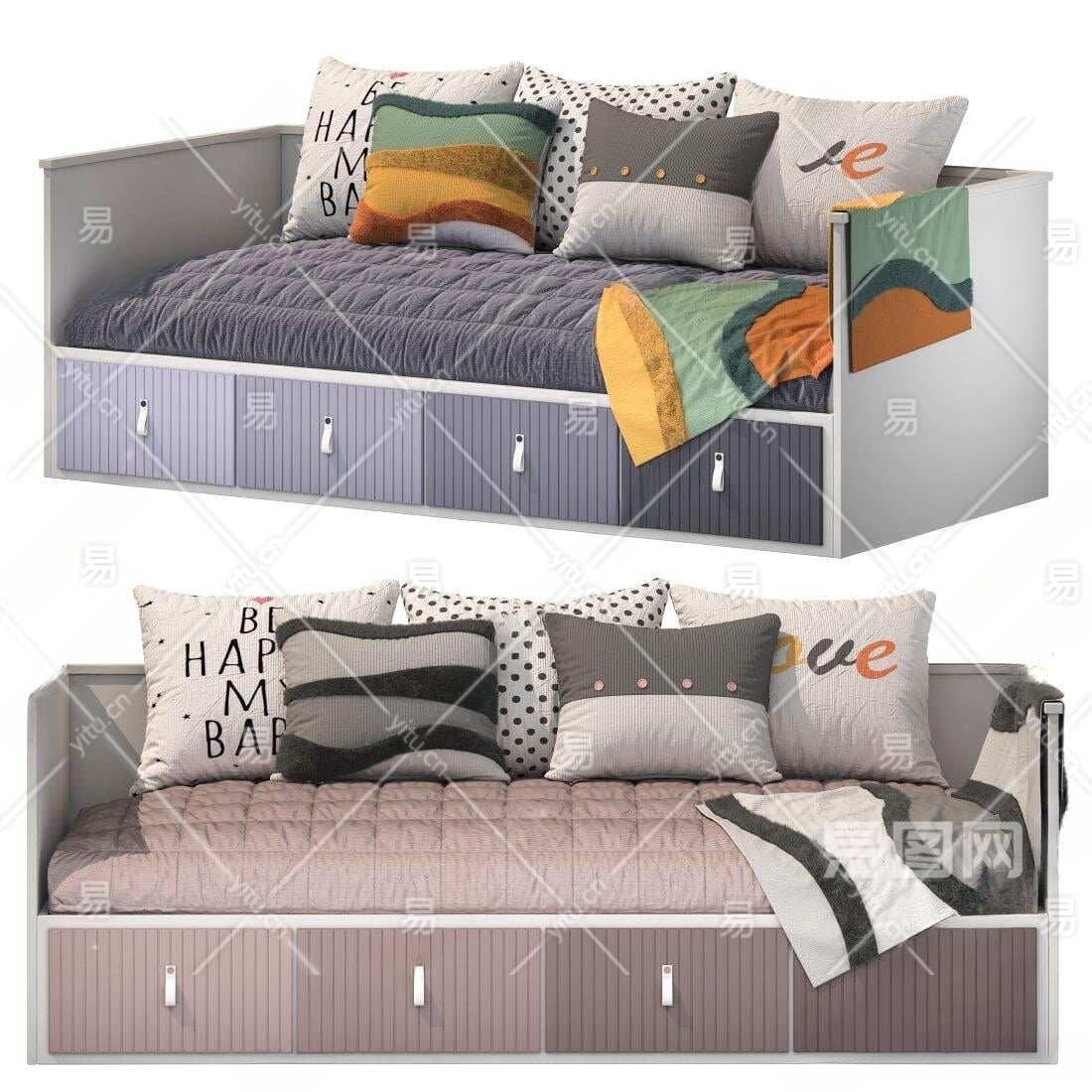 现代儿童床3D模型下载