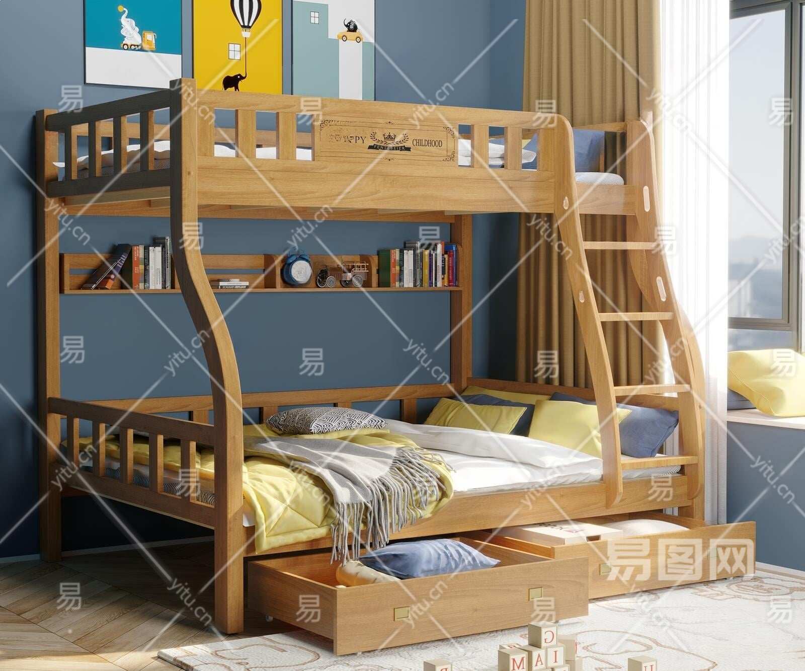 现代儿童双层床3D模型下载