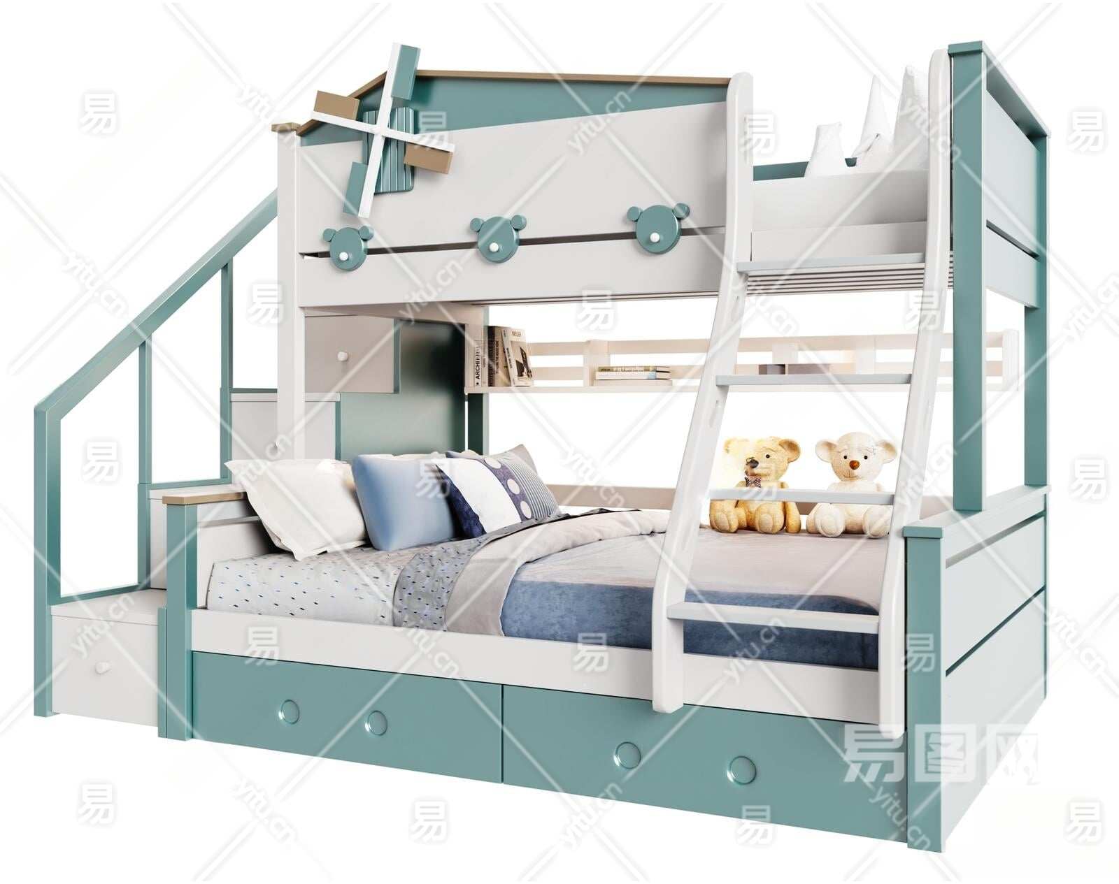 现代儿童双层床3D模型下载