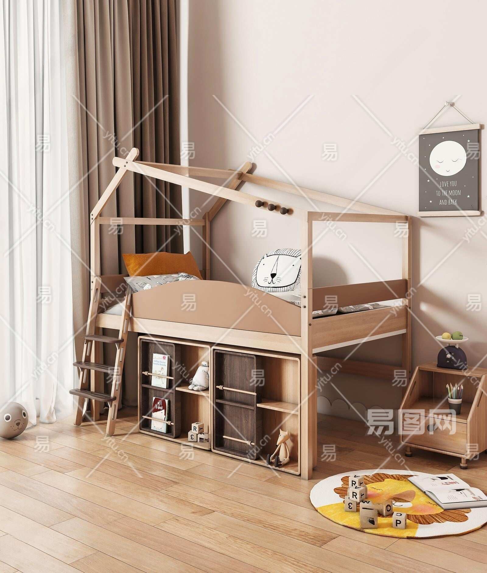 现代儿童床3D模型下载