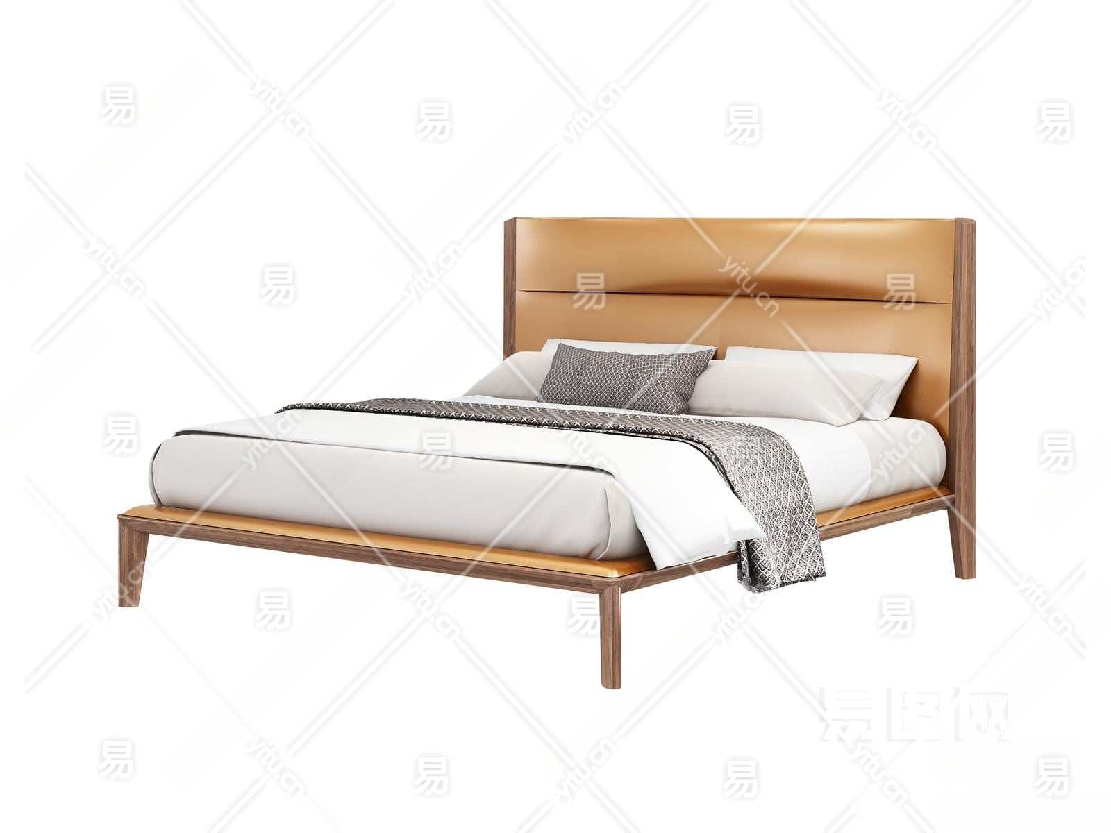 现代双人床3D模型下载